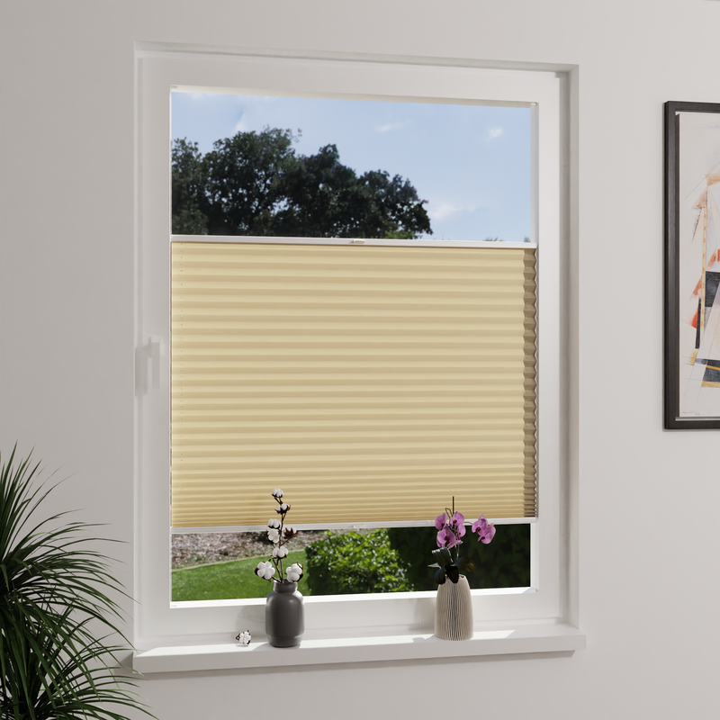 Plissees mit blickdichten Tageslichtstoffen sind die ideal, wenn Sie Ihre Privatsphäre schützen möchten, ohne auf Helligkeit zu verzichten. Es dringen keine neugierigen Blicke durch den Stoff, aber genügend Licht, um Ihrem Zuhause eine wohnliche und freundliche Ausstrahlung zu verleihen.