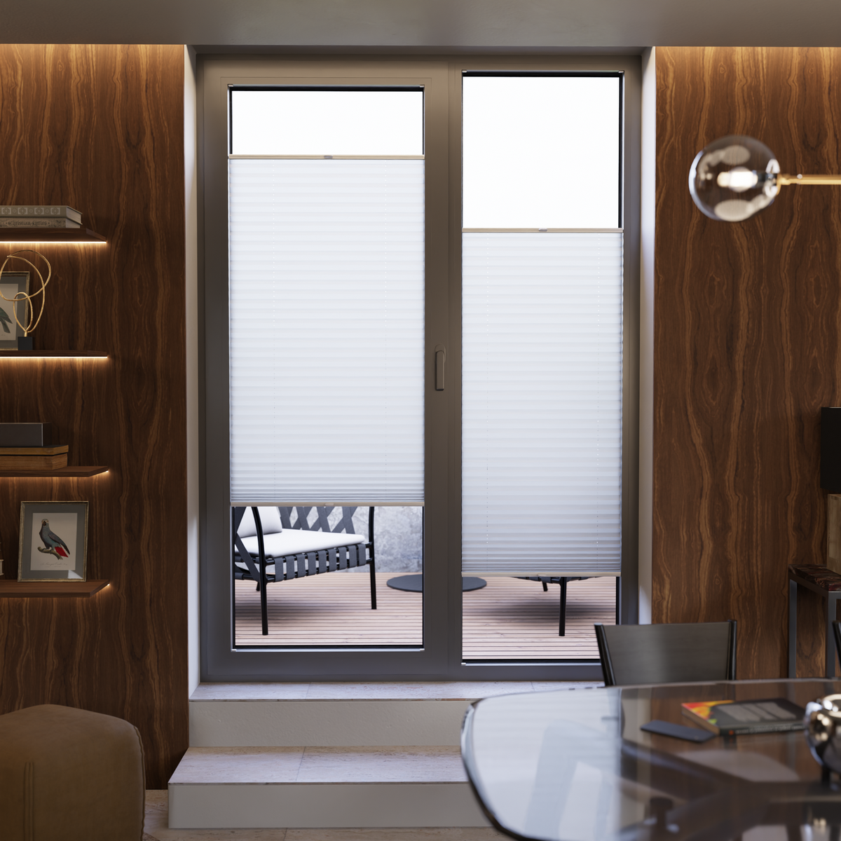 Dank der komfortablen Griffbedienung lässt sich das Plissee stufenlos von oben und unten verschieben – ganz ohne störende Schnüre. Das stabile COSIFLOR® C3 Spannschuhsystem sorgt für eine langlebige, sichere Bedienung und präzise Lichtregulierung.