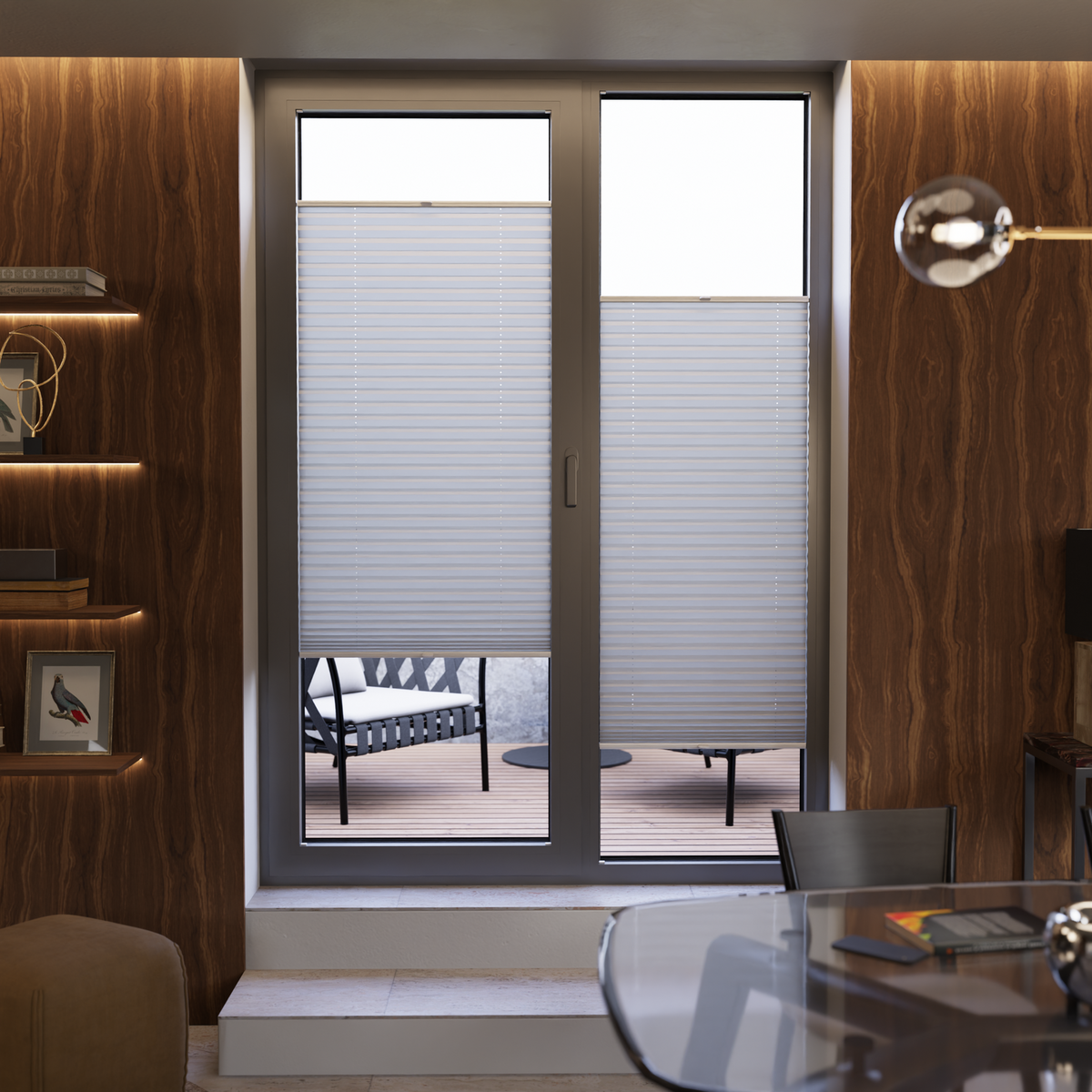 Dank der komfortablen Griffbedienung lässt sich das Plissee stufenlos von oben und unten verschieben – ganz ohne störende Schnüre. Das stabile COSIFLOR® C3 Spannschuhsystem sorgt für eine langlebige, sichere Bedienung und präzise Lichtregulierung.