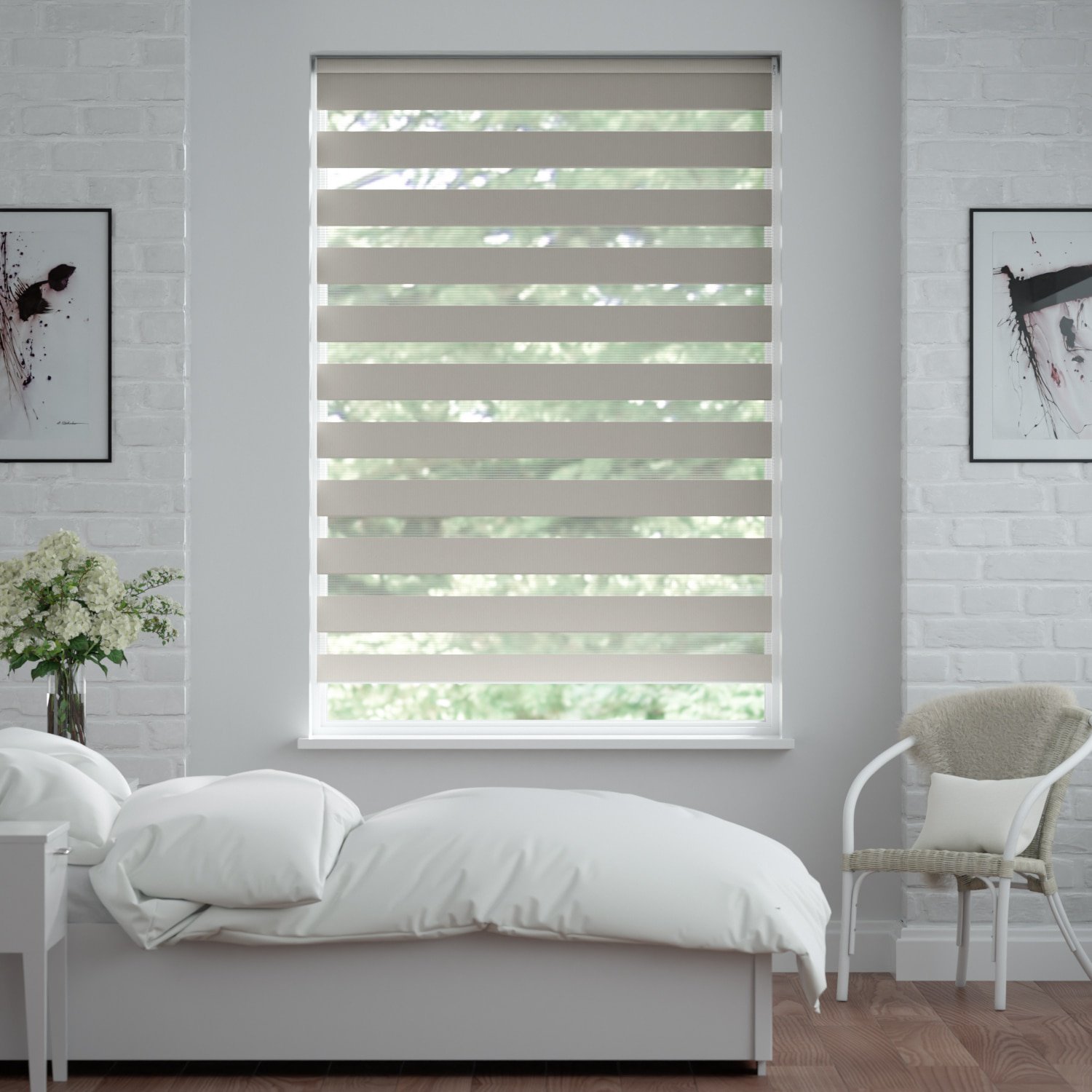 Die Doppelrollo nach Maß zum Klemmen oder Schrauben (aber auch zum Kleben) sorgen für einen stilvollen Wechsel zwischen lichtdurchlässigem Sichtschutz und Verdunkelung nach Bedarf. Je nach Stoffdesign und Streifenbreite wirken sie dezenter oder auffälliger. Doppelrollos, oder auch Duo Rollo bzw. Zebra Rollo genannt sind ein sehr beliebter Sonnenschutz für Fenster, welcher durch seinen individuell einstellbaren Lichteinfall absolut einzigartig ist. Doppelrollos nach Maß sind kinderleicht in unserem Konfigurator zu bestellen. Einfach die Maße des Doppelrollos eingeben und bestellen. Gerne beraten wir Sie auch telefonisch, oder Sie nutzen unseren kostenlosen Musterservice für Doppelrollo-Stoffe.